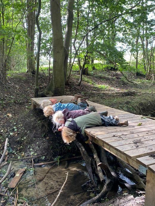 Barnet oplever den umiddelbare store glæde ved at tumle og bevæge sig i naturen. Her er der ingen fysiske begrænsninger, der er højt til loftet, rum og plads til at være, der er ingen støj. Vi ønsker gennem naturen at give børnene en fysisk tryghed og stimulere et tidligt grundlag for udvikling af deres indre og ydre ro.