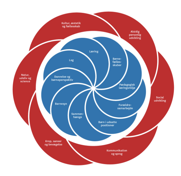 I danske daginstitutioner, som fx børnehaver, vuggestuer og dagpleje, arbejder pædagoger ud fra seks læreplanstemaer og et fælles pædagogisk grundlag for at støtte børns udvikling på mange forskellige måder