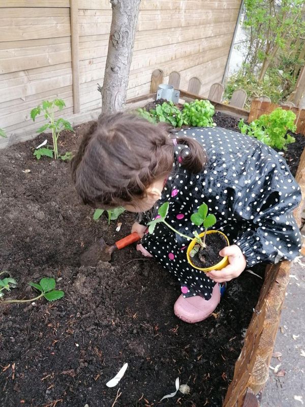 I slutningen af foråret holder vi plantedag i huset. Her medbringer alle børn en plante eller blomst, som vi planter i vores plantekasser på legepladsen. Børnene inddrages i at fylde jord i plantekasserne, tage planterne ud af potterne, fylde jord omkring planterne og sidst, men ikke mindst, at vande dem.