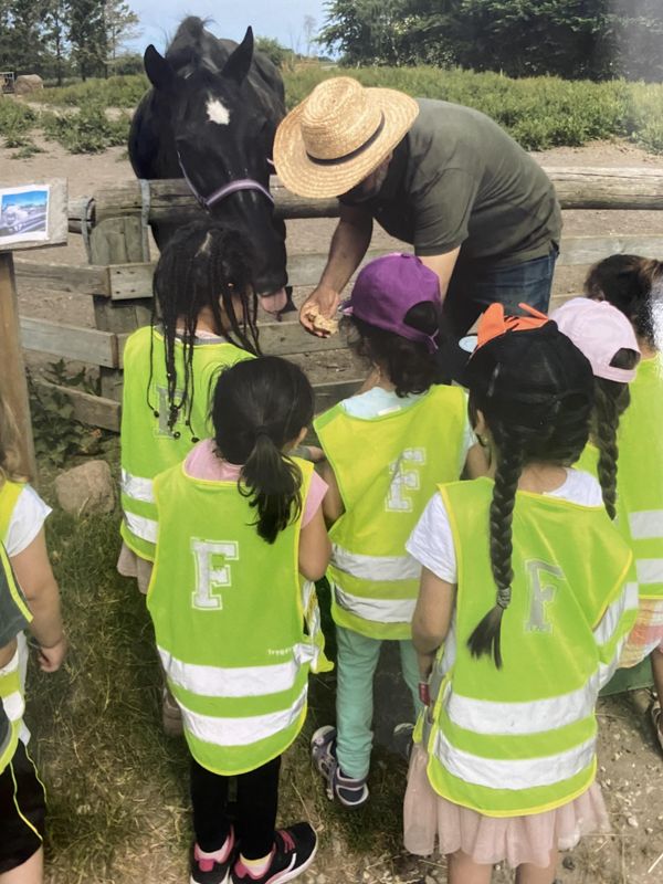 Hvert år tager vi på en stor udflugt i børnehaven, som tilrettelægges ud fra børnegruppens interesser. De sidste tre år har vi været på bondegårdstur. På bondegården har vi fået indblik i, hvilke dyr der lever på en gård, og vi har oplevet dem på tæt hold. Vi har kørt traktortur på markerne, redet på heste og klappet kørerne.