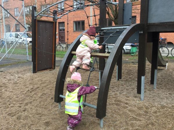 Efter frugten vil vi typisk gå på legepladsen eller lege på stuerne.