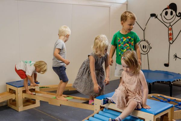 I praksis betyder det, at vi dagligt stimulerer børnenes 3 primære sanser: Taktilsansen, vestibulærsansen og muskel-led sansen samt træner og automatiserer børnenes grundmotoriske bevægelser som f.eks. at kravle, klatre, krybe, løbe, hoppe, sparke, kaste, trække, skubbe mm.