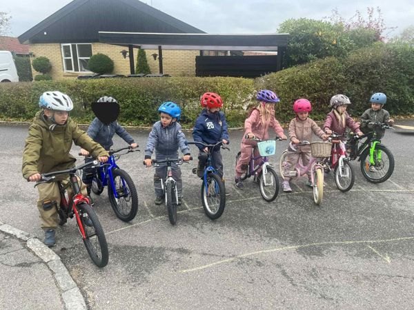 Som en del af det at gøre børnene klar til skolen, så har vi haft et cykelprojekt, hvor dansk skolecykling kom ud og lavede cykeltræningsaktiviteter med børnene. Aktiviteter som vi har materialerne til så vi kan lave dem med børnene flere gange inden de skal i skole.