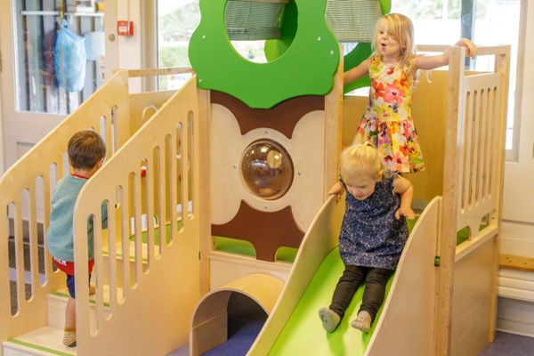 Børnene er glade for vores lille legehus i fællesrummet, hvor de kravler op og rutsjer ned. Under den er der en fin lille hule man kan gemme sig i.